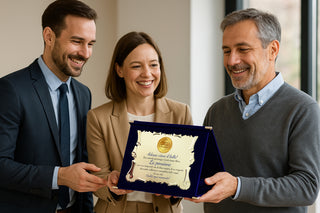 Targa Personalizzata Regalo per Matrimoni, Anniversari, Lauree, Pensionamenti e Riconoscimenti Speciali | Cristallo e Pergamena Dorata
