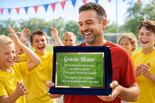 Targa Ringraziamento Allenatore Calcio | Targa "Grazie Mister" su Cofanetto in Velluto | Idea Regalo Allenatore Fine Stagione | Targa Ricordo Squadra Calcio 20x15 cm