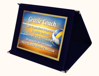 Targa Ringraziamento Coach Pallavolo | Targa "Grazie Coach" su Cofanetto in Velluto | Idea Regalo Allenatore Volley Fine Stagione | Targa Ricordo Squadra 20x15 cm