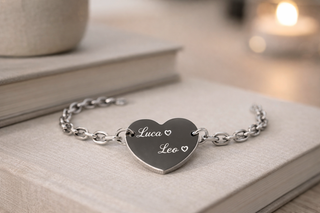 Braccialetto a cuore da donna in acciaio con incisione personalizzata | Regalo personalizzato con nomi date e dediche personali | Misura unica