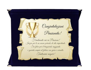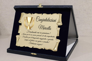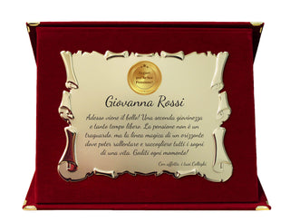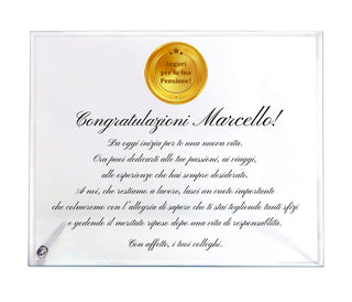 Targa Personalizzata Regalo per Matrimoni, Anniversari, Lauree, Pensionamenti e Riconoscimenti Speciali | Cristallo e Pergamena Dorata