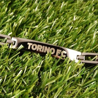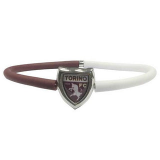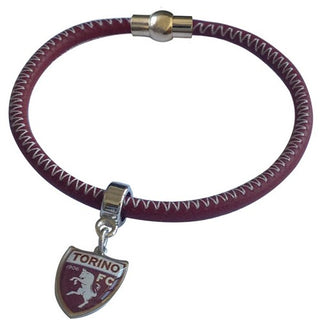 Pulsera Torino de tejido macramé granate con óvalo de cerámica y escudo colgante